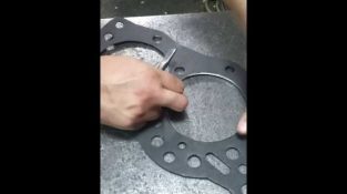 Een ingenieur wijst ons de weg maakt zich koppakking voor een motor.