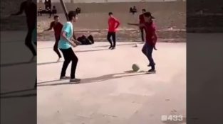 Een grappige incident tijdens een voetbalwedstrijd tussen studenten.