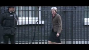 Footage gelekt uit prothymourgiko huis van Downing Street, tonen Theresa mei tot barst met gebaren aan journalisten. In feite is dit een comedy video van het Britse productiemaatschappij Studio Yes.