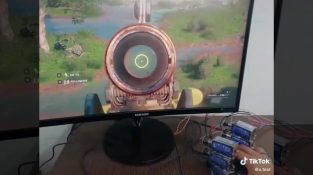 Geïmproviseerde muis die het afstoten van een wapen in een videogame simuleert.