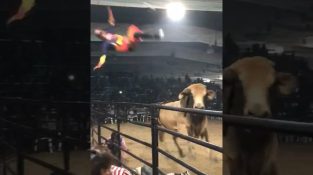 Tijdens een Rodeo, een stier zal een man hoog in de lucht schieten.