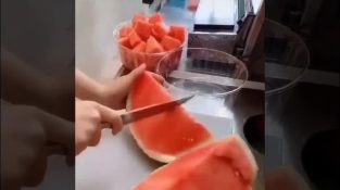 Een gemakkelijke en snelle methode om een watermeloen te serveren.
