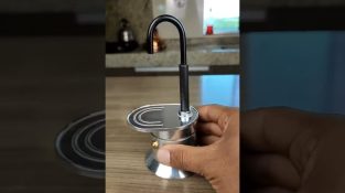Een klein koffiezetapparaat dat werkt met stoomdruk.