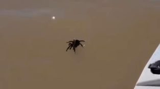Een tarantula loopt over het water