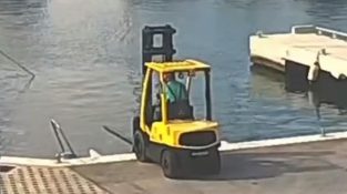 Op een pier, de machinist van een klerk probeert een opblaasboot uit het water te halen. Maar hij trekt niet aan de handrem van Clark, en de machine zal in zee vallen.