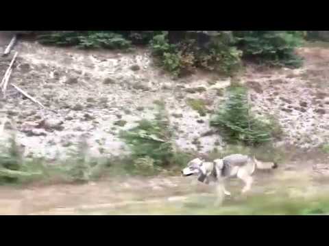 Min familie, min far, og svigerfamilie kjørte rundt Radium Hot Springs. Det var en tåkete morgen på grunn av alle skogbranner som har skjedde i provinsen. Min mann deretter bremset ned og så en grå ulv ved siden av veien. Han varslet oss, og fordi jeg er alltid fascinert av naturen og ville dyr vi møter langs våre turer, Jeg fikk telefonen min og begynte å spille inn. Jeg satt helt på baksiden av van da jeg så ham kjøre ved siden av veien, og da jeg snudde for å se på baksiden som da jeg la merke ham jage etter bilen. Han kjørte så fort og han hadde øynene bare på oss fordi det var andre biler på motsatt retning. Han jaget oss for et godt par kilometer og en utrolig opplevelse. Hvis vi bare hadde tid ville vi har prøvd å se hvor langt han vil følge oss, men vi var på en tid knase i tillegg. Jeg var ivrig på å rapportere eller ringe parker Canada fordi vi var redd for at ulven kan få treffe min et annet kjøretøy i bevegelse, men det var ingen tjeneste i området.