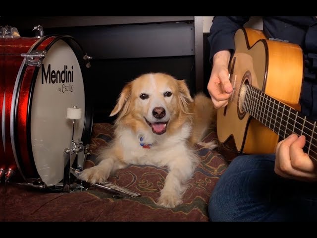 AcousticTrench og hunden hans Maple fremfører AC/DCs 'Back In Black' sammen.