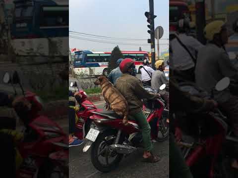 «Jeg gikk på veien da jeg så en hund kjøre rundt på en motorsykkel. Når sykkelen begynner å bevege seg, hunden reiser seg og klemmer eierens nakke for sikkerhets skyld.»