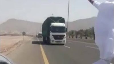 Saudi mann farlig stunt hoppe foran bilen i Makkah motorveien