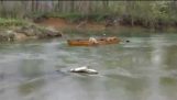 Dyr etterlot en valp i en båt og filmet den påståtte redningen. Hva ventet han på, og han grep ikke inn?; Med mindre han viser oss hva en Rottweiler er i stand til. På en meter tok han frem en mobiltelefon og tok seg tid til at noen nettopp hadde igjen (kanskje han også )tauet fra båten som allerede var bundet der det med strømmen av elven ble strukket... Tauet skulle vært strukket fra begynnelsen, hvis en liten flyt til venstre ses.