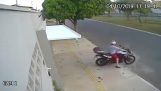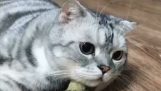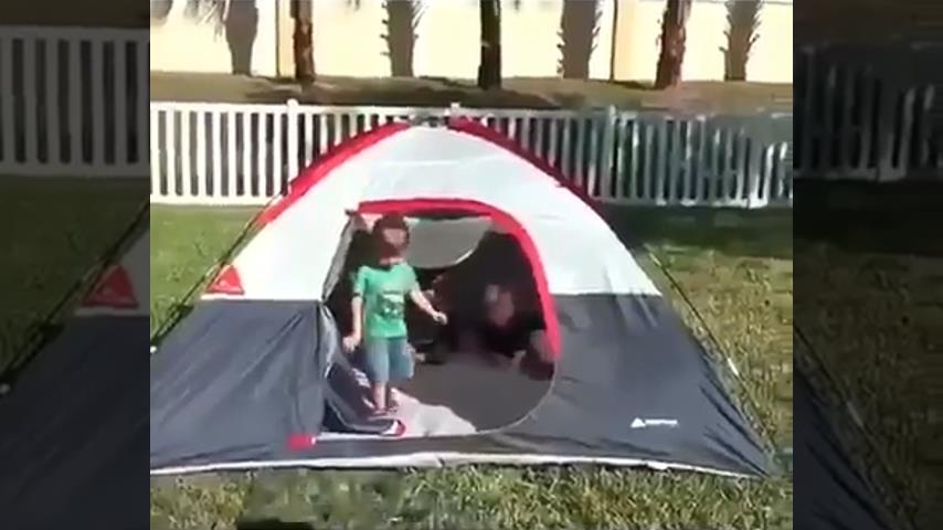 En etter en, fem små barn snubler over samme sted når de kommer ut av teltet.