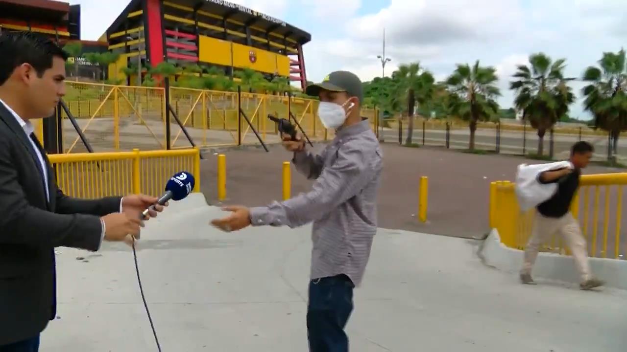 Fredag 12. februar 2021 i nærheten av Guayaquil Stadium i Ecuador, Journalisten Diego Ordinola og teamet hans var i ferd med å gå i live da en tyv truet dem med en pistol for å stjele en mobiltelefon. En av teknikerne ga endelig telefonen til tyven som deretter reiste med sin medskyldige på en motorsykkel.