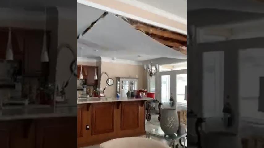 I Hot Springs, Arkansas, snøfallet når 40 centimeter etter nylig enestående snøfall i det sørlige USA. På grunn av is og mangel på isolasjon, vannrørene i dette huset ble ødelagt, som førte til vannlekkasje og kollaps av taket.