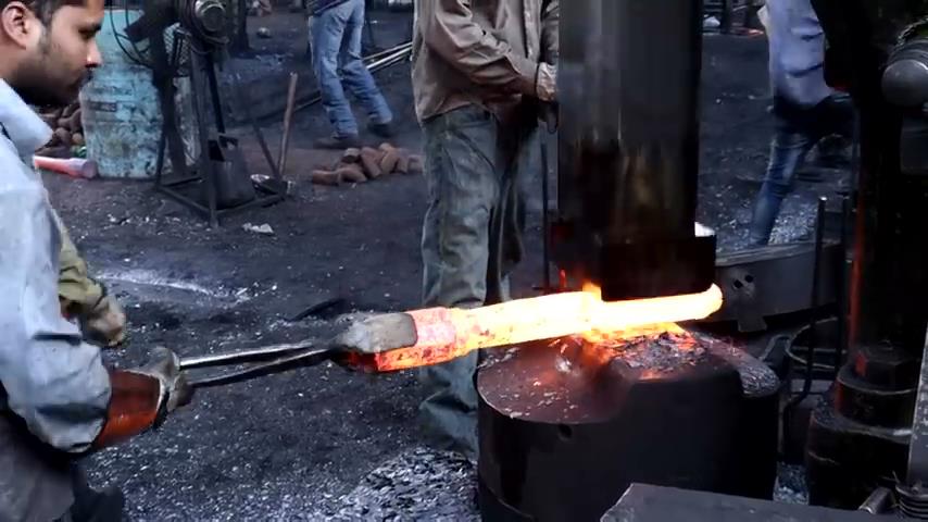 Konstruksjon av aksler for lastebiler i et stålverk i India.