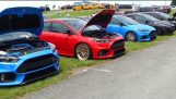 Føreren av en Ford Mustang prøver å gjøre figur burnouts, men ender opp ødelegge bilens clutch.