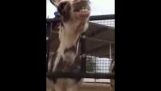 Den akrobatiske teknikken til et esel for å krysse et tregjerde.