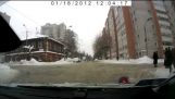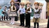 En liten gutt på trommer, Han ser hans venn slips og faller på. Etter, var...