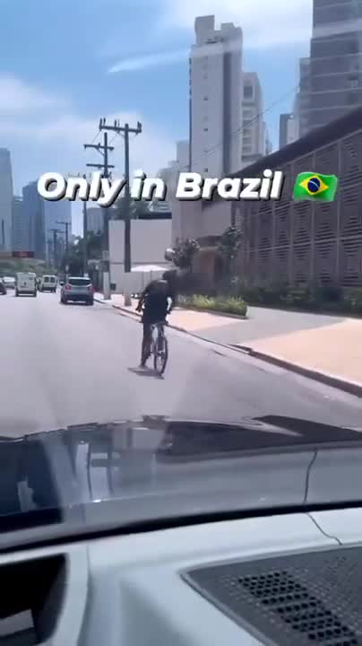 En mann i Brasil som øver på å heade en ball mens han sykler
