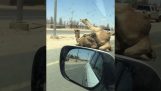 En amerikansk politibetjent stoppet på en motorvei da en ulykke skjedde, men klarte ikke å bremse trafikken og en annen sjåfør kolliderte med det allerede immobiliserte kjøretøyet.
