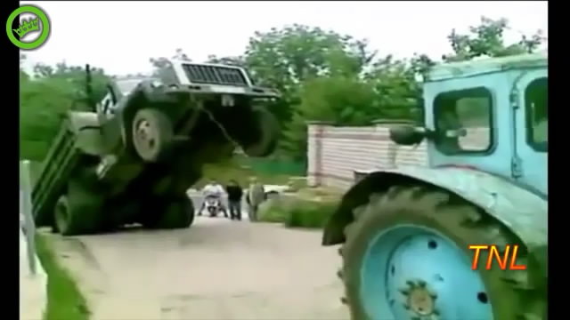 Den mislykkede forsøk på slepe traktor, som lasten er fast i en grøft.
