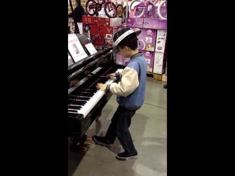 På Costco engros Mall, den lille Felipe trer delen med musikkinstrumenter, Stund venter for foreldrene til slutt shopping. Står foran piano og imponerer folk med talent ved å spille klassisk musikk.