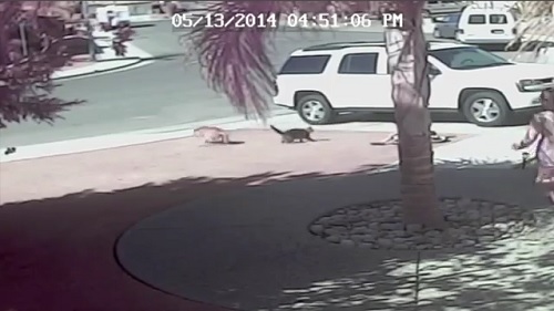 I Bakersfield, California, spredt hunden angrepet med ferocity i en pjokk og skarp mens du spiller med sin sykkel. Familien katten som var nær, starter umiddelbart og bokstavelig talt lagrer pjokk, dispelling hunden bort.