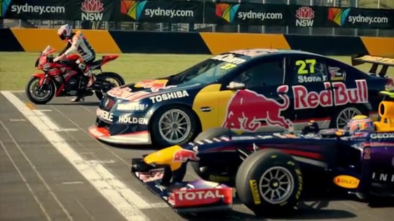 Ο Mark Webber σε Formel 1, Jamie Whincup i superbil og Casey Stoner på en motorsykkel vil gjøre et løp på sporet. Arrangementet var organisert av Top Gear, i 'Top Gear Festival' i Sydney Australia.