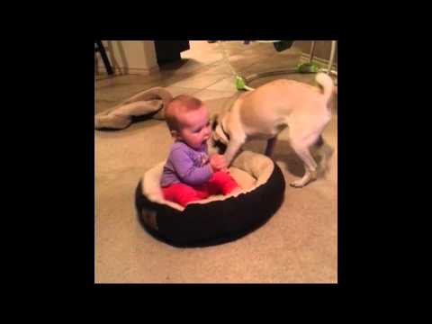 Denne kampen mellom hund og baby som rettmessige eier av sengen er litt for søt å håndtere.