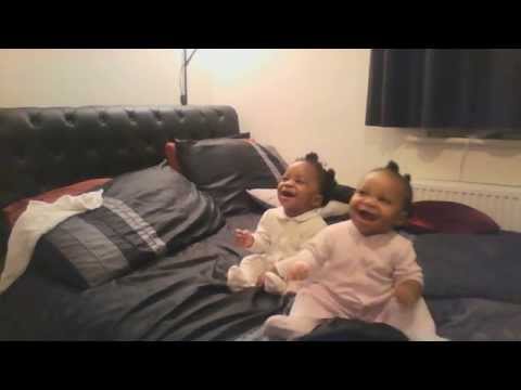 8 måneder gamle tvillingjenter som danser til morens fremføring av Eastenders-temamelodien.