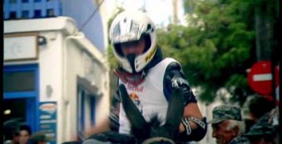 Av salen for maskinene i.... Esel saler steg deltakere i Red Bull esel Cross, holdt på søndag i Makrinitsa, Pelion.