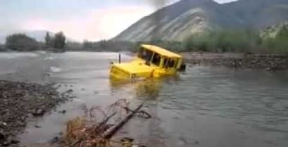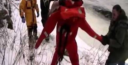 En uheldig Labrador som har blitt fanget i det iskalde vannet av Indian River i Michigan, USA, reddet av brannmenn.