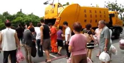 Som å si 'Ismannen er her' én ting. Innbyggerne i Luodong i Taiwan venter på å komme glad søppel å kaste bort deres søppel. Selvbetjent dvs..