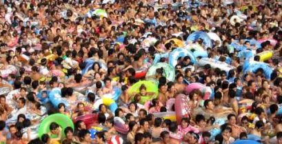 Den japanske Nyt(;) badet deres samlet seg i innendørsbassenget «Summerland» i Tokyo.