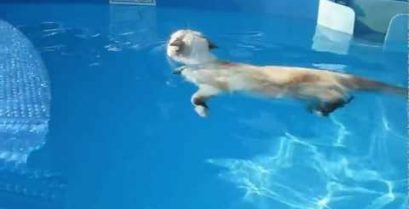Til og noe uvanlig, en katten hvem elsker svømming i bassenget.