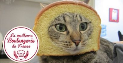 Under TV-dekning i Frankrike, en katt kolliderer med glass døren til et bakeri.