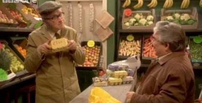 Ronnie Corbett og Harry Enfield stjerne i skissen fruktig fra The en Ronnie, Skrevet av Dawson Bros. Stor britisk komedie