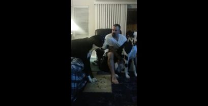 Dinky hunden sjalu for når sjefen kjærtegnet en annen hunden. Så, Han motsetter seg og begynner å sutre med grynt.