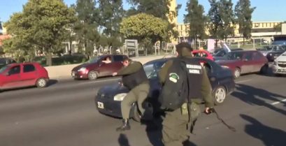 I Argentina og under en arbeidernes demonstrasjon, en gruppe gendarmes (militærpoliti) og gikk gjennom en travel gate. En av dem faller med vilje på frontruten på en bil og later til å være det [...]