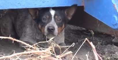 Hope For Paws redder en løs hund som ble forlatt og levde i 11 måneder under en søppelkasse.
