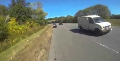 nummerskilt kommer flyr ut under motorveien tur og impales sykkel.