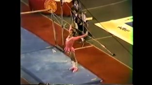 Hos kvinner gymnastikk mesterskapet NCAA 1983 Utah, den komiker og Turner Paul Hunt laget en morsom utseende som Paulina, utfører et forsøk på en trapesstang.
