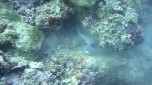 Dykkere har sett en dødelig kamp med haier moray! Denne videoen ble filmet under en av dykking safari i Maldivene