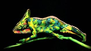 En kameleon med bodypaint