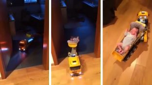 Mamma er ikke hjemme, og pappa funnet til å spille med barnet. Kjører en ekstern kontrollert lastebil, vil gjøre en kort tur med barnet i tilhengeren. Den lille sover stille [...]