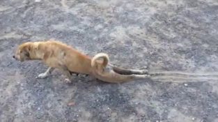 En hunden drar bakbeina av late den skadde, men snart avslørt når han innser at ingen gir betydning.