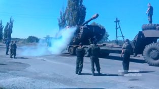 Et sted i Ukraina, soldater prøver å laste en artilleri tank i en armatoforea. Mpliat!