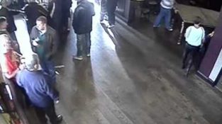 En kunde går biljardbord å gjøre vei for bandet, en annen glemmer og går og lener seg på bordet ... awww