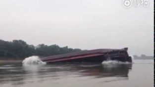 Skipet som frakter grus elv i Kina, opp ned fra overvektig belastningen.