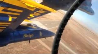 Pilotene av akrobatiske laget av amerikanske marinen, blue Angels, gjøre en utstilling av sine talent flyr i nærheten formasjonen. Deres jagerfly (F-18) er bare noen få inches mellom de.