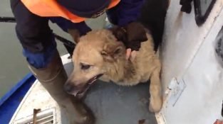 Hjelpe en hunden fanget i frosne elven
